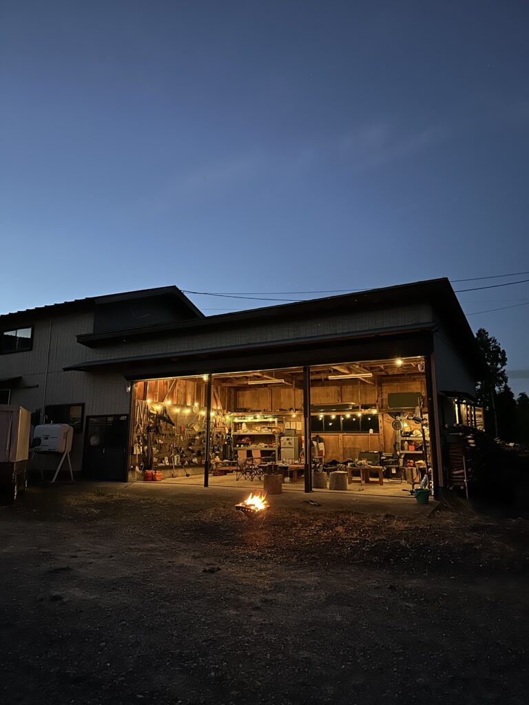 夜、工房に灯る明かりを眺めながら、