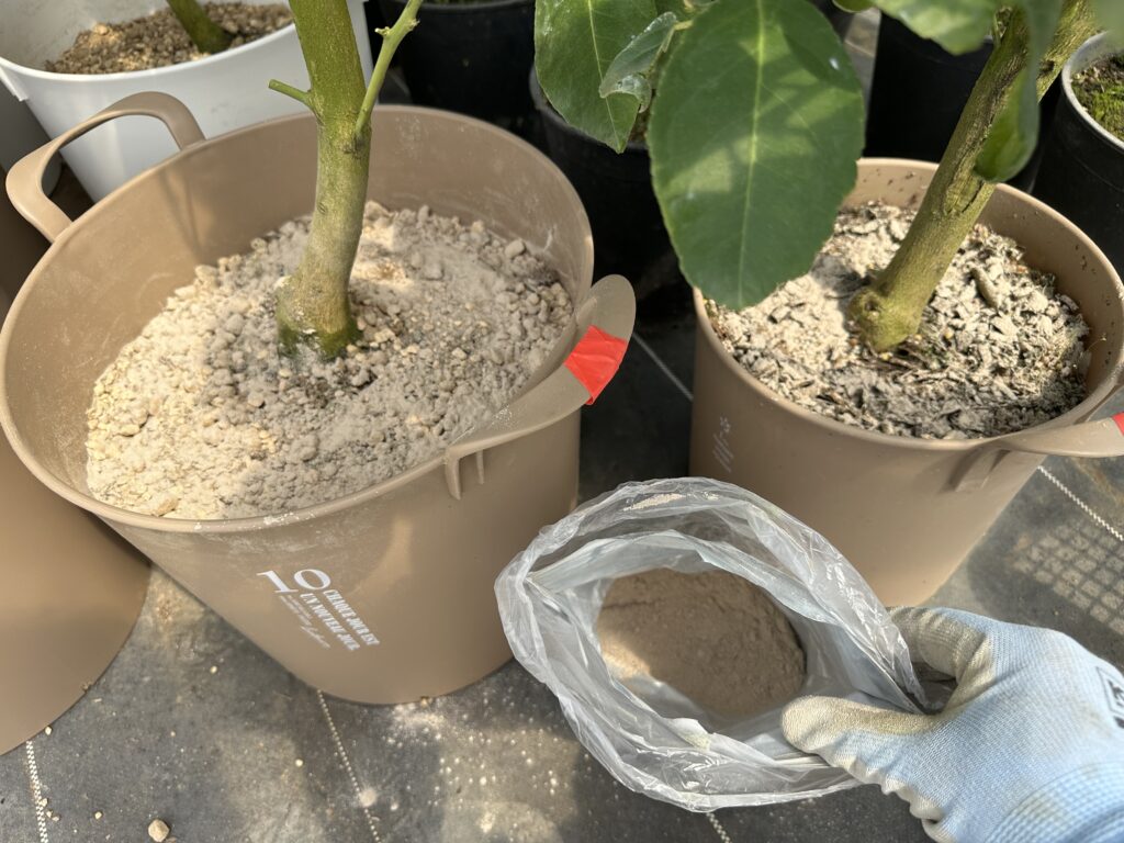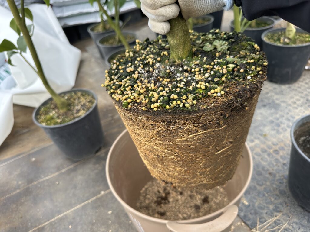 隙間に新しい土を入れる。