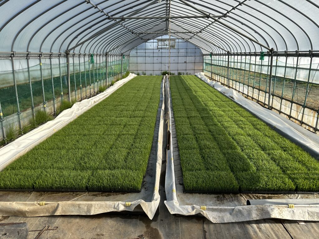 👉 茶色の苗箱がビッシリ!!